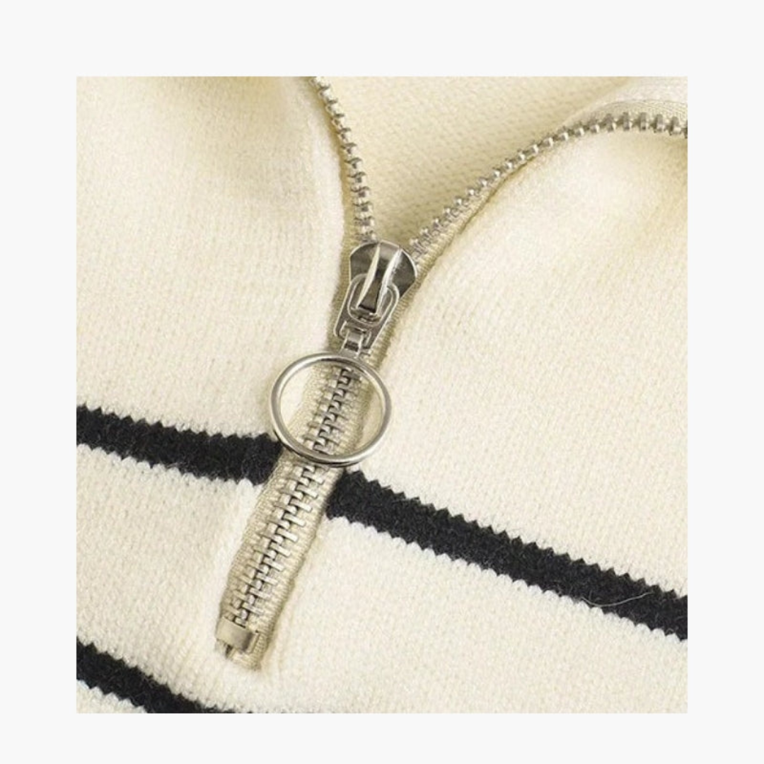 Maison Greyford | Women's Striped Half-Zip Sweater | Classic Knit